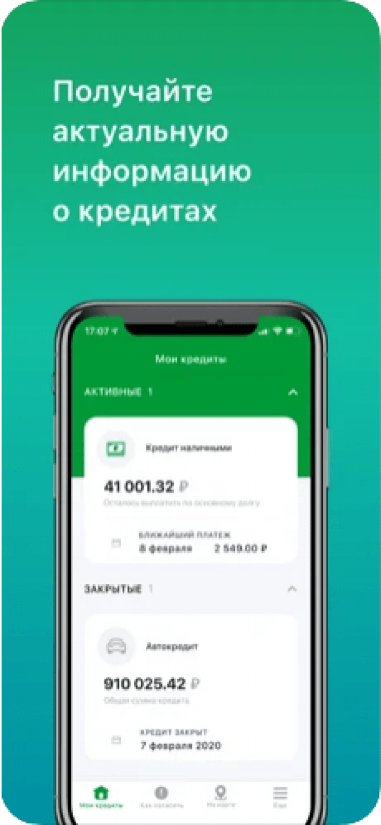 В последней версии приложения, вся информация по полученному кредиту будет всегда у вас под рукой. Вы всегда сможете проверить дату ближайшего платежа и осуществлять платежи по кредиту, прямо с экрана своего мобильного телефона. Здесь вы будете контролировать просроченную задолженность и сможете узнать сумму, которую необходимо внести для полного или частичного досрочного погашения кредита. А после полного погашения кредита, в приложении можно проверить, был ли закрыт ваш кредитный договор.