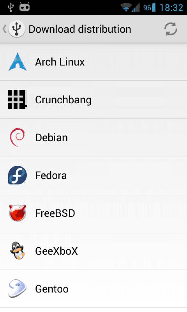 Программа DriveDroid позволяет с лёгкостью скачать образ нужной операционной системы из списка, насчитывающего около 35 наименований. В него входят Mint, Ubuntu, Fedora, OpenSUSE, Arch Linux и многие другие. В дополнение к этому, программа позволяет создавать пустой образ USB-носителя, на который можно с лёгкостью переносить важные данные с ПК в случаях, если флешки не оказалось под рукой.