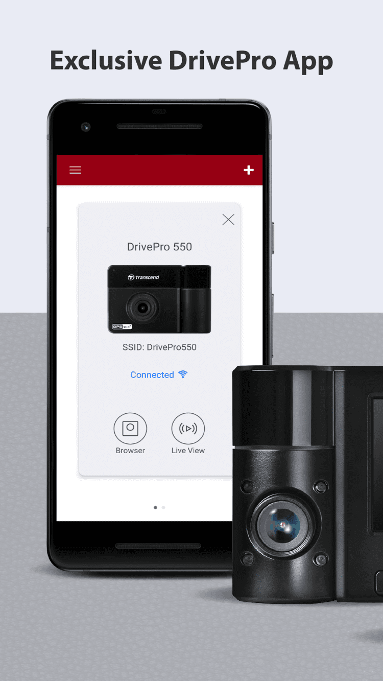 DrivePro Программа для транслирования видео, записываемого на автомобильный видеорегистратор Transcend DrivePro DP200 на мобильные устройства Android в реальном времени. Таким образом, вы сможете следить за происходящим перед вашей машиной, припаркованной возле дома. Так же, программа будет передавать записанные ролики на ваше мобильное устройство. Благодаря программе DrivePro, вы сможете производить настройку своего видеорегистратора Transcend DrivePro DP200 прямо со своего смартфона или планшета. Помимо этого, программа позволяет удалять записанные видео с карты памяти видеорегистратора.