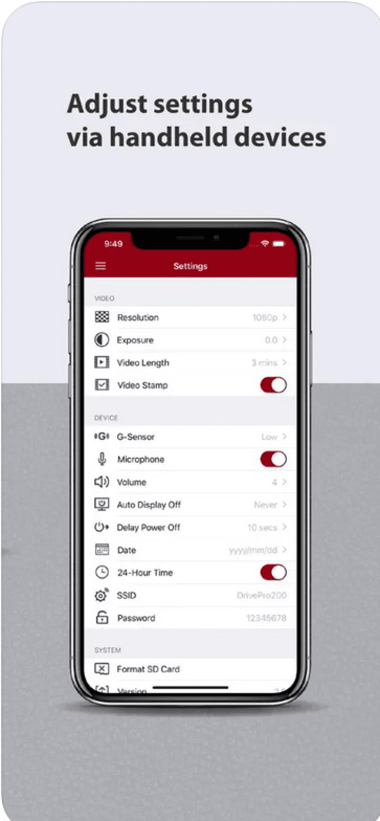 DrivePro Программа для транслирования видео, записываемого на автомобильный видеорегистратор Transcend DrivePro DP200 на мобильных устройствах под управлением iOS в реальном времени. Таким образом, вы сможете следить за происходящим перед вашей машиной, припаркованной возле дома. Так же, программа будет передавать записанные ролики на ваше мобильное устройство. Благодаря программе DrivePro, вы сможете производить настройку своего видеорегистратора Transcend DrivePro DP200 прямо со своего смартфона или планшета. Помимо этого, программа позволяет удалять записанные видео с карты памяти видеорегистратора.