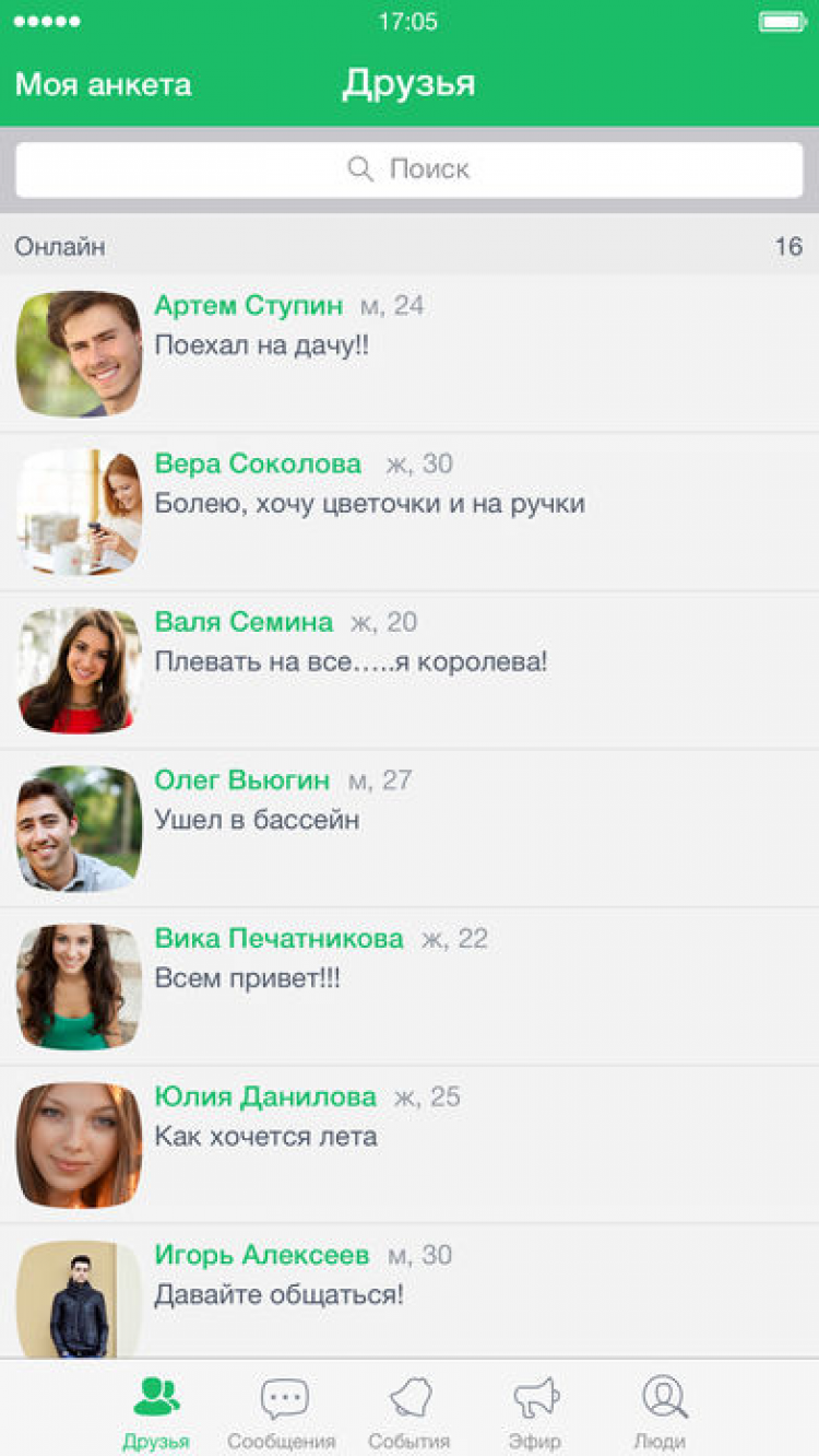 Для того, чтобы общаться только с интересными для вас людьми, вы можете создать анкету и заполнить её данными о своих интересах, чтобы другие пользователи могли узнать, что вам нравится. Также, вы сможете читать анкеты других пользователей и выбирать, с кем из них вы хотите общаться. Обменивайтесь с окружающими людьми мгновенными текстовыми сообщениями, используйте многочисленные веселые смайлики и оставайтесь в курсе всех событий из жизни ваших друзей, просматривая ленту их новостей.