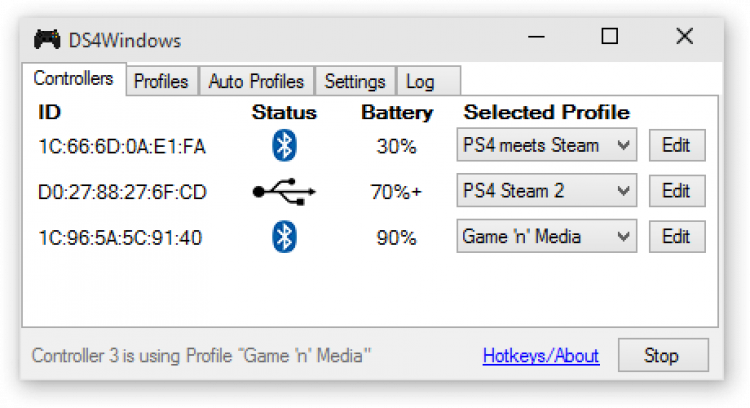 Используя DS4Windows, вам не придётся долго разбираться во множестве настроек. Простой и удобный интерфейс программы поможет быстро произвести все необходимые настройки и приступить к игре. Вместе с этим, вам не придётся каждый раз вносить новые настройки при запуске новых игр, благодаря возможности сохранения профилей. Создайте специальные профили для своих любимых игр, отметьте каждый из них отдельным цветом для быстрого поиска и переключайтесь межу ними свайпом двумя пальцами по тачпаду на контроллере. А для большего удобства, вы сможете настроить автоматическое изменение профилей при запуске определённых программ.