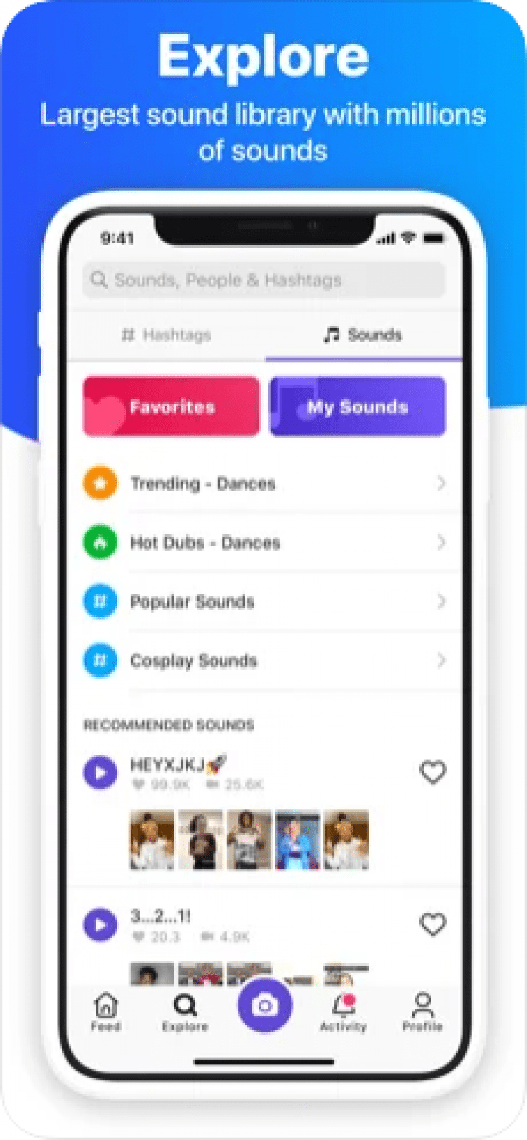 Приложение не требует каких-либо особых навыков и опыта. Всё, что вам необходимо сделать, чтобы создать видеоролик, это воспользоваться поиском по каталогу музыки, а затем записать собственное видео, при помощи камеры мобильного телефона. Разумеется, программа также позволяет использовать готовые видео из памяти устройства. Продвинутые алгоритмы помогут продвигать ваши лучшие творения по огромному сообществу авторов, а приятным дополнением станет возможность делиться созданными видео с друзьями, через социальные сети и мессенджеры.