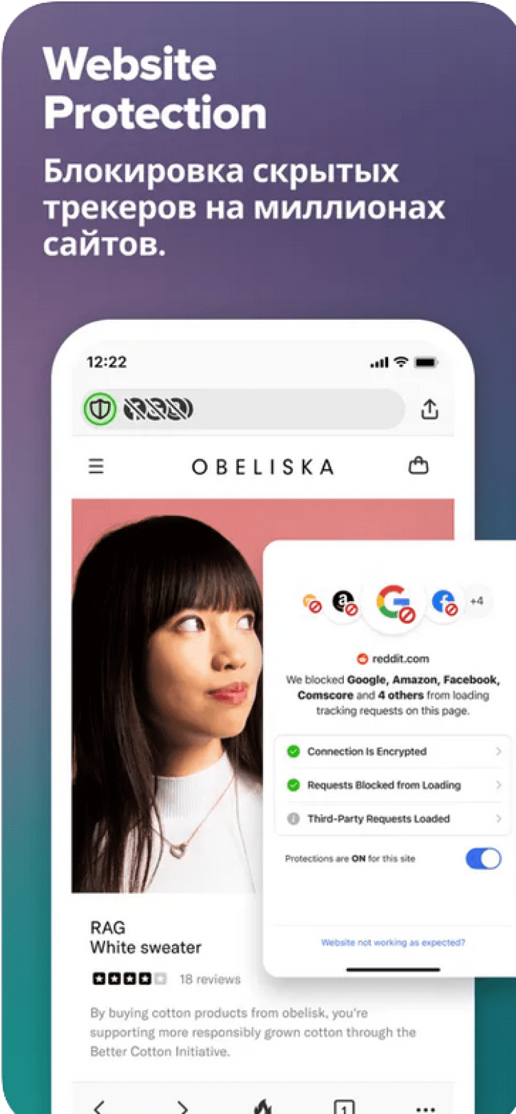 Кроме того, DuckDuckGo Privacy Browser обладает функцией защиты конфиденциальности. Она позволяет обнаружить скрытые трекеры, выявляя крупнейшие рекламные сети, следящие за вами, а затем заблокировать их.