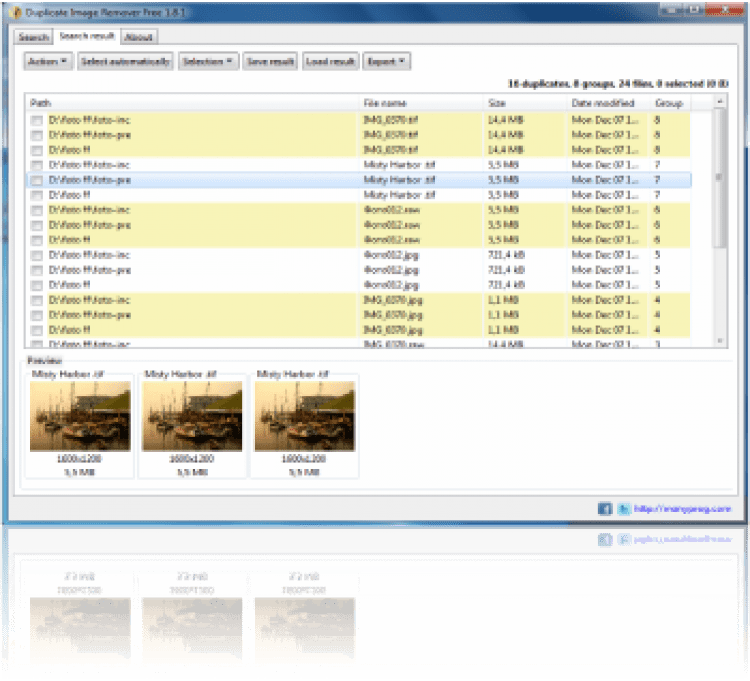Duplicate Image Remover Free сканирует диск, в поисках графических файлов по определенным критериям. После чего она показывает найденные дубликаты. Перед удалением вы можете самостоятельно выбрать наилучшую копии, которые следует оставить, а остальное удалить. К сожалению данная программа не доступна на русском языке.