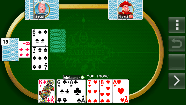 - многопользовательский режим игры по Bluetooth (только в игре Дурак);