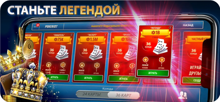- 24 или 36 карт в колоде;