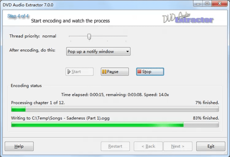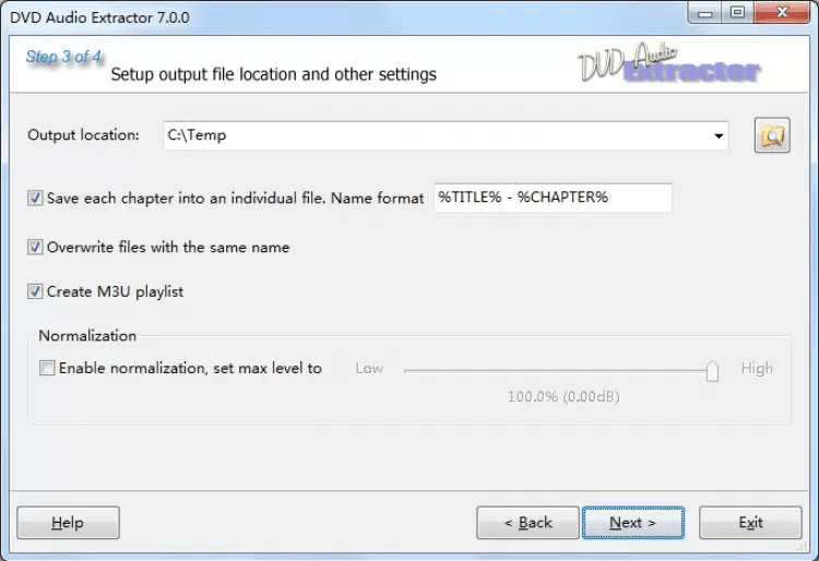 DVD Audio Extractor это приложение, которое может извлекать аудио из DVD фильмов и экспортировать его в форматы OGG, MP3, WAV или FLAC. Оно включает в себя пошаговый мастер, который поможет выполнять эту процедуру легко и быстро.