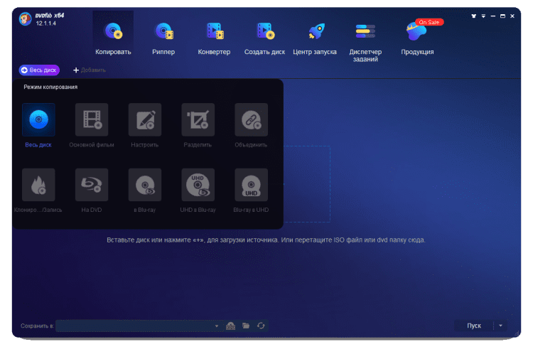 Программа DVDFab для Windows считается лучшей среди подобных, так как снимает ограничения и защиту. Даёт возможность создавать точную копию видеоданных. Позволяет сохранять субтитры, меню, языковые переводы. Для того чтобы добраться до опций приложения, требуется попасть в контекстное меню: кликайте правой кнопкой мыши, дожидайтесь его появления на экране.