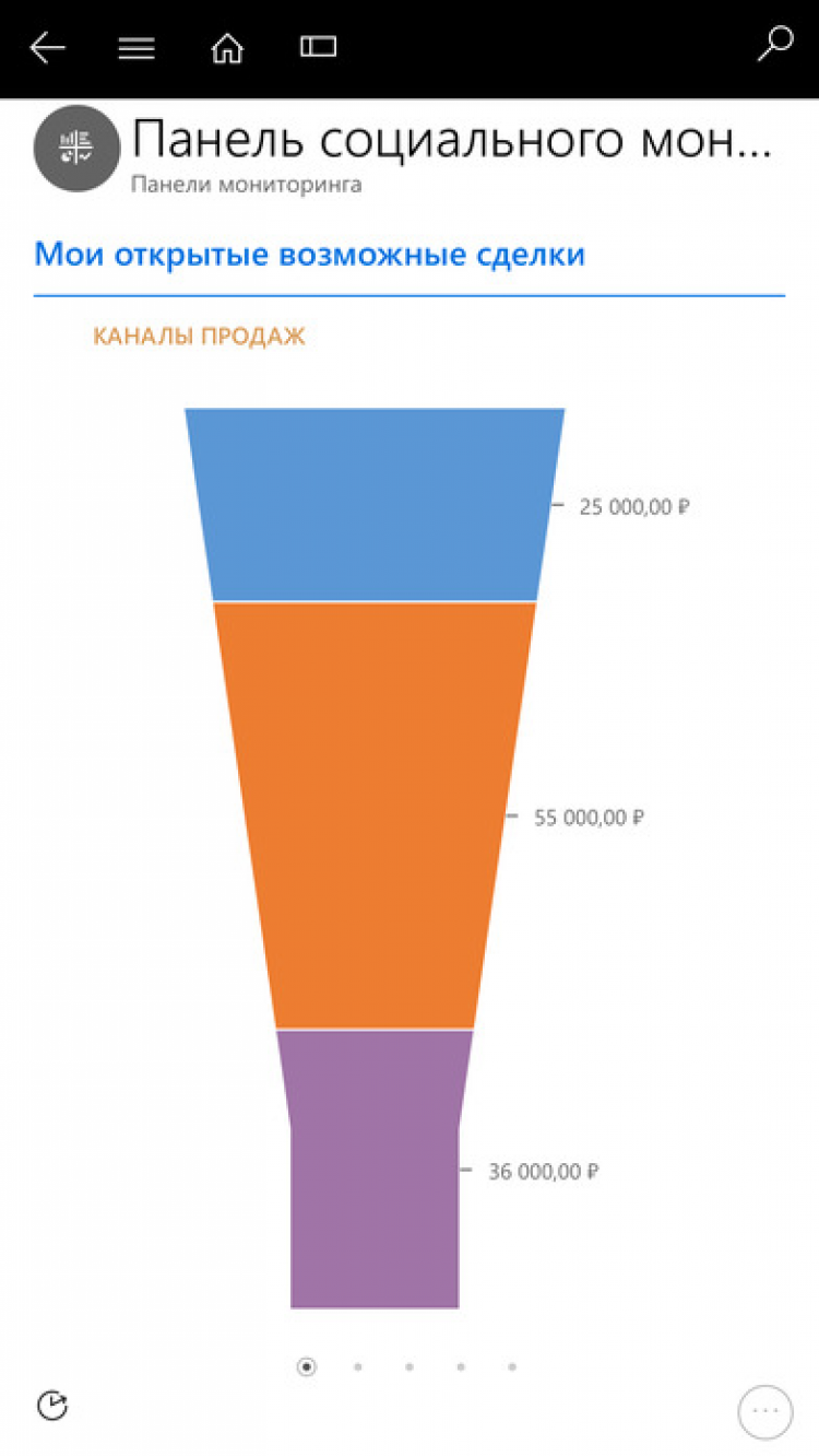 Это приложение позволит вам оставаться на связи и продуктивно работать в любой момент, где бы вы ни были. Приложение Microsoft Dynamics CRM позволит вам оставаться в курсе новых сведений о клиентах, поможет обновить ваши заметки, задачи, контакты, данные об организациях, а так же многое другое. Так же, вы сможете быстро вводить данные о новых клиентах всего в несколько кликов и отслеживать ход выполнения различных задач по наглядным ключевым показателям эффективности с диаграммами. Чтобы быстро получить самую необходимую информацию, вы можете закрепить плитку на панели мониторинга приложения.