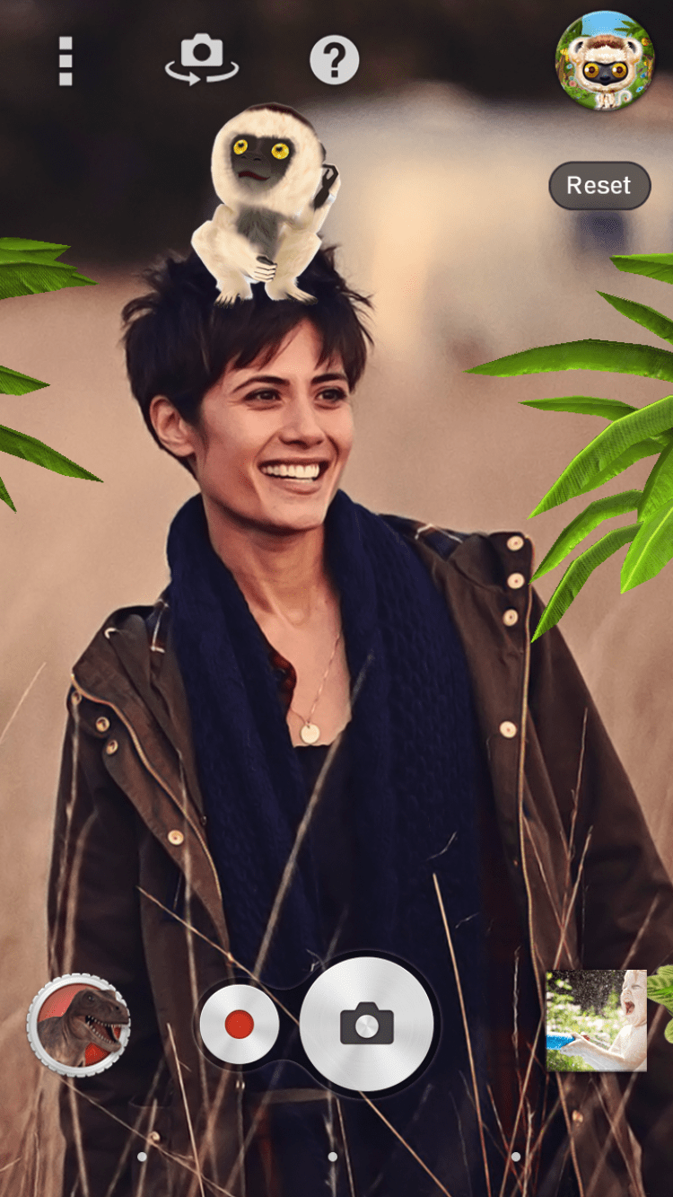 Джунгли Эта программа позволяет добавлять AR-эффекты темы "Джунгли" на ваши фотографии и видео, при использовании приложения "AR-эффект" на устройствах Xperia. Программа обладает технологией распознавания лиц, что позволит использовать прикольные объекты в режиме реального времени во время съемки. Вы можете перетаскивать анимации по кадру и изменять действия трехмерных объектов, просто прикасаясь к ним.