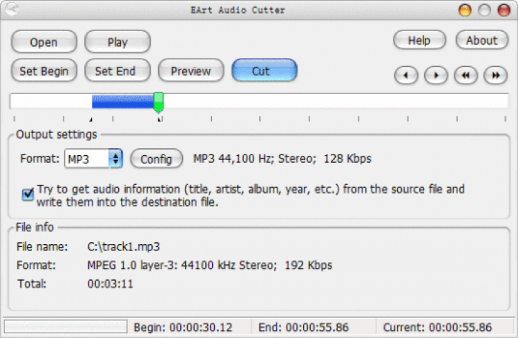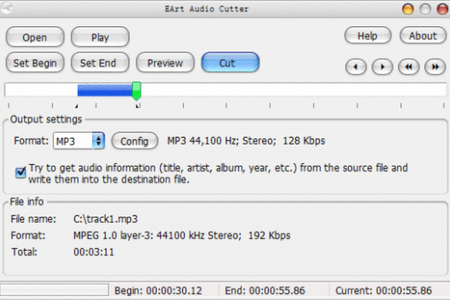 EArt Audio Cutter - это программа для нарезки аудио файлов на фрагменты. Работает с треками в формате MP3, WMA, OGG или WAV.