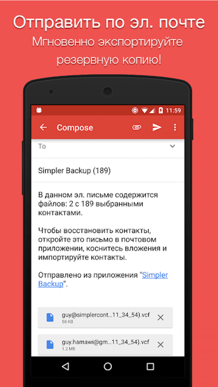 Ищете способ сохранить контакты своей телефонной книги, чтобы избежать случайной потери данных? Тогда вам поможет эта программа. Она позволяет создавать бэкапы контактов в один тап, а затем сохранять их на облачном хранилище. Либо, вы можете отправить резервную копию по электронной почте, в виде .vcf файла. Немаловажно, что сохраненные таким образом контакты можно восстановить, всего несколькими прикосновениями к экрану мобильного телефона.