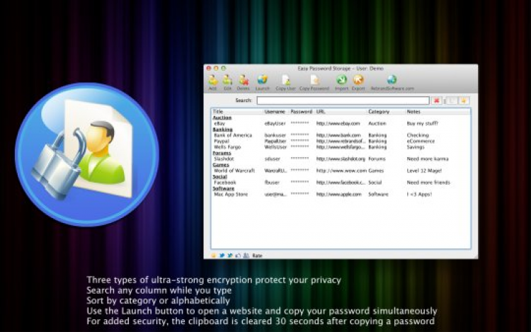 Easy Password Storage Эта программа предоставляет надежное удобное и хранилище, в котором пользователи могут хранить свои пароли. База паролей шифруется одним из стандартов по выбору (AES, Blowfish или Serpent).