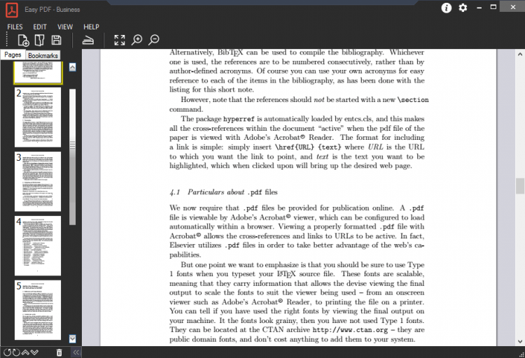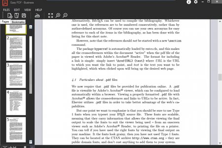 Easy PDF так же позволяет масштабировать страницы во время просмотра, добавлять закладки. Боковая панель со страницами документа позволяет легко и быстро перемещаться по документу.