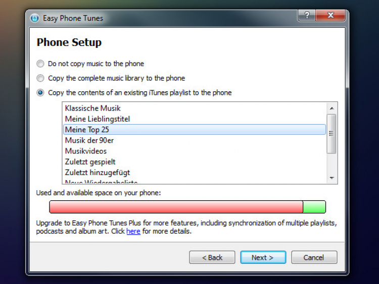Easy Phone Tunes предоставляет возможность выбора, копировать всю музыку, или только треки из определенных плейлистов. Вы можете выбирать один, или сразу несколько плейлистов.