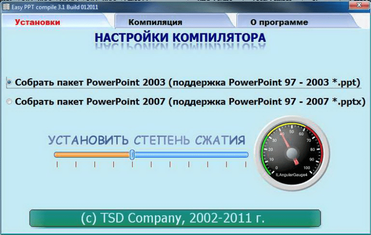 Easy PPT Compile - это свободно распространяемый в исходных кодах конвертер презентаций MS PowePoint в исполняемый самодостаточные файлы *.exe, запуск которых не зависит от установленного ПО на компьютере пользователя.