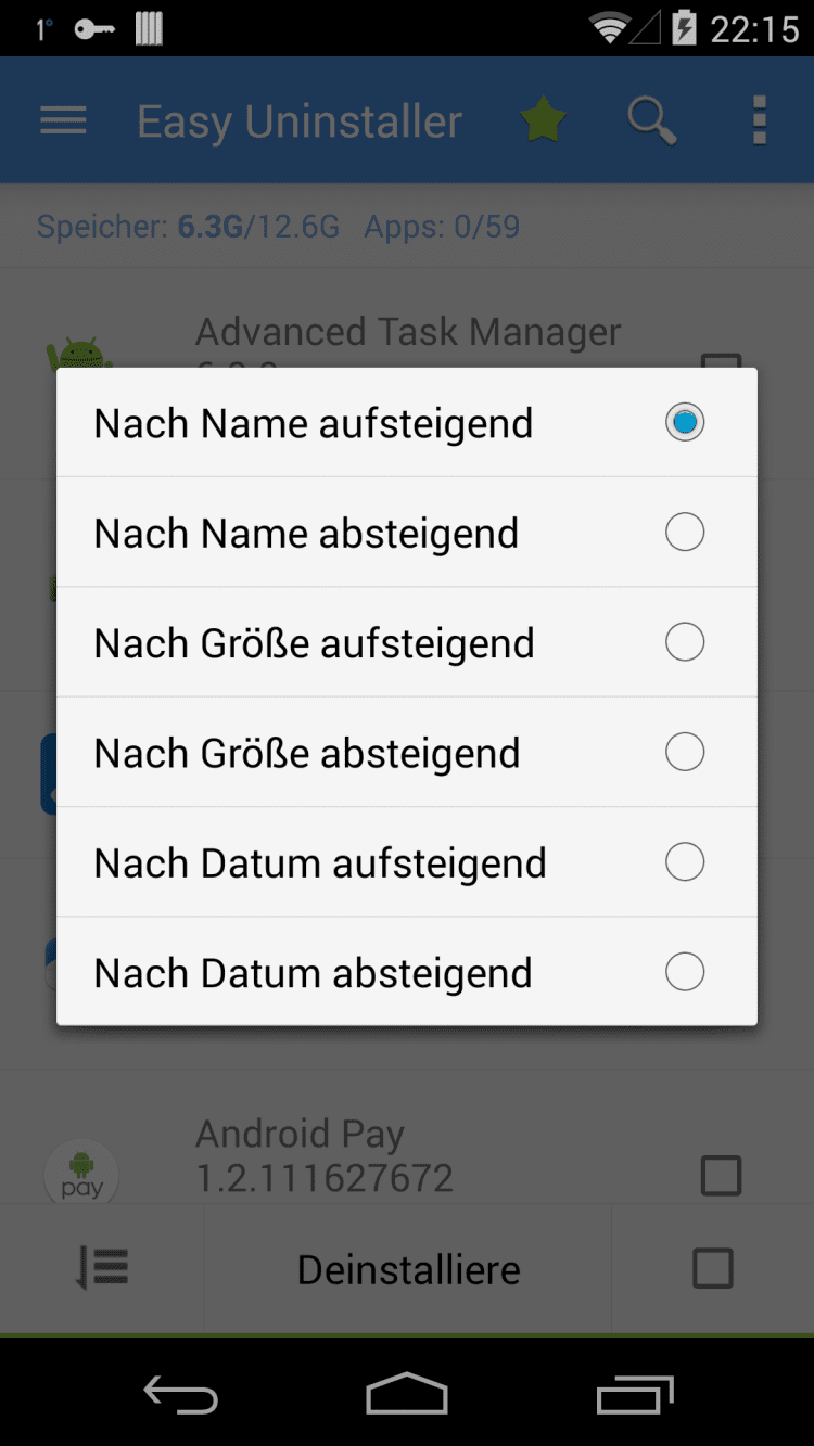 Easy Uninstaller Программа для быстрого удаления приложений с мобильных устройств на Android, обладающая возможностью пакетного удаления. Удаляйте любое количество приложений всего в один клик. Easy Uninstaller позволит вам выполнить поиск приложений по имени, а так же отсортировать приложения по имени, версии, времени обновления или размеру. Помимо этого, вы сможете, получить ссылку на страницу в Google Play для выбранных вами программ, а так же делиться ими с друзьями.