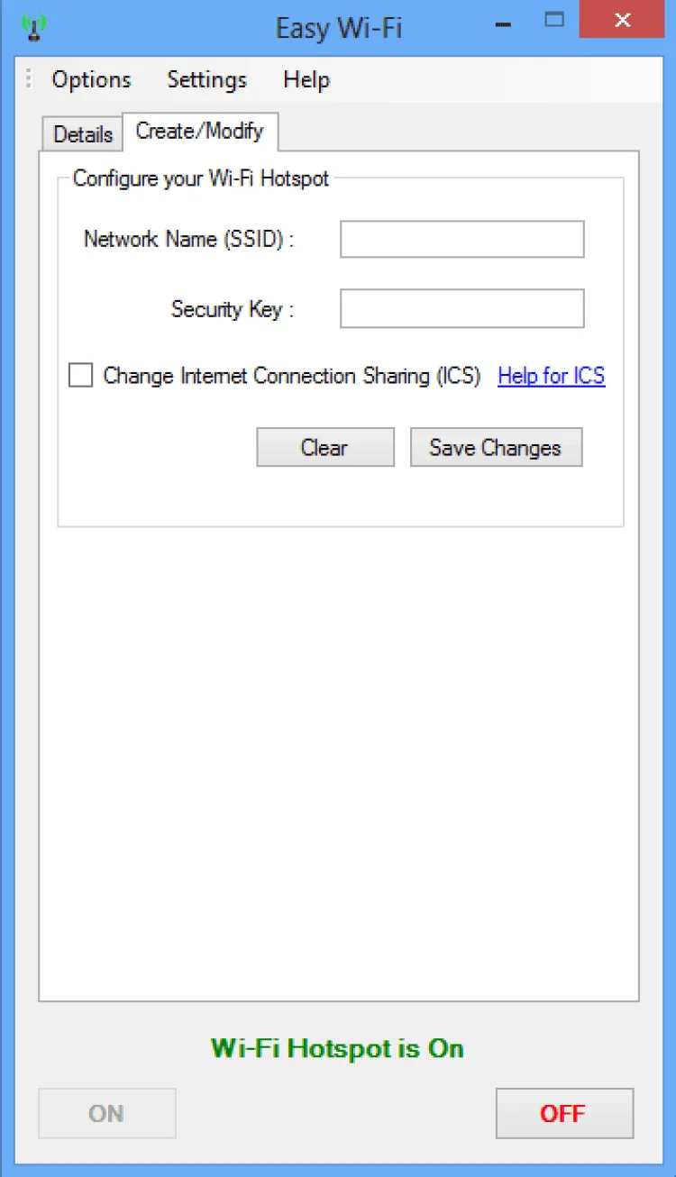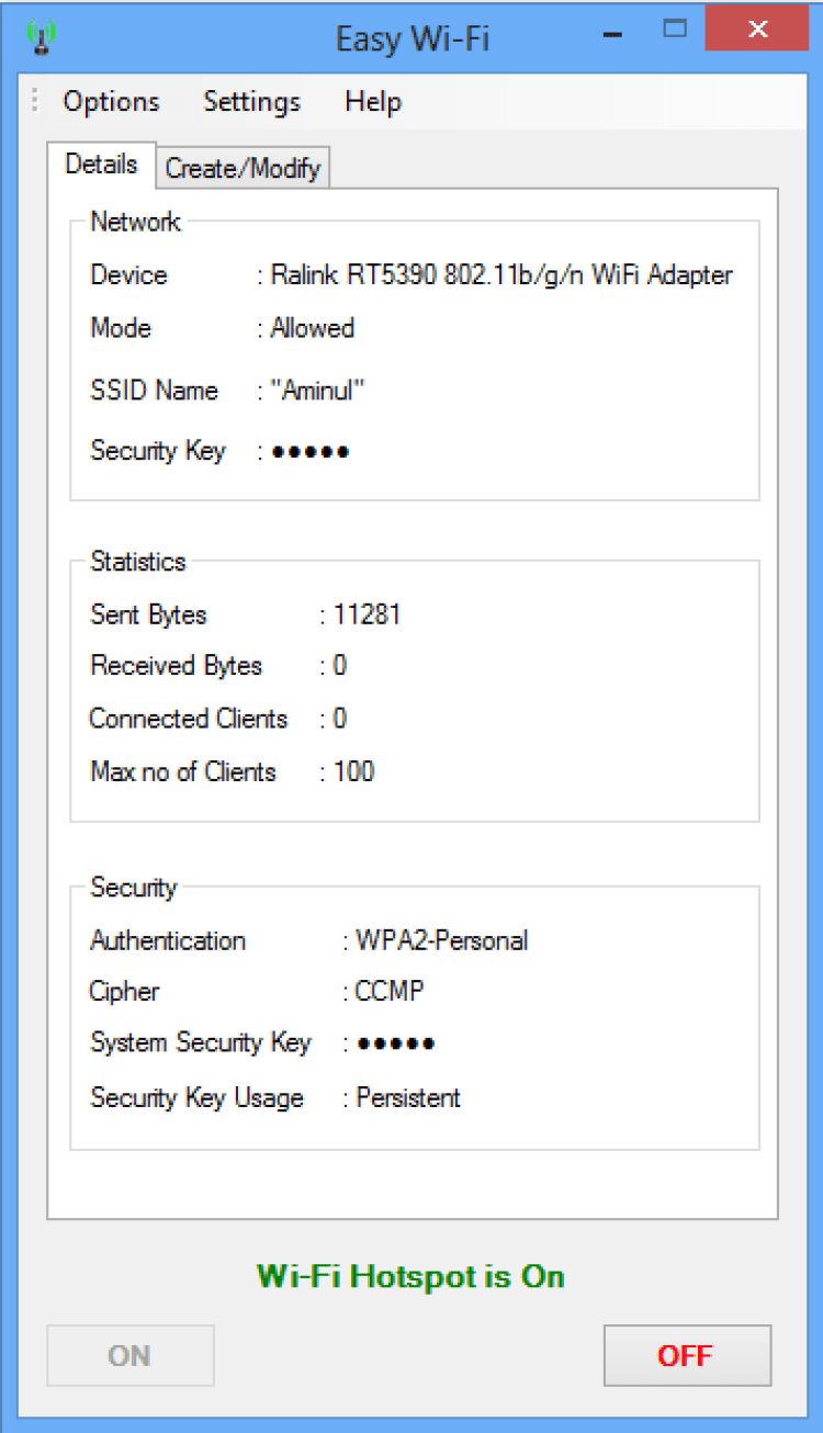Easy Wi-Fi Portable - простая в настройке утилита, позволяющая превратить ноутбук или компьютер (при наличии Wi-Fi адаптера) под управлением ОС Windows 8 в беспроводную точку доступа. Чрезвычайна проста в настройке благодаря интуитивному интерфейсу.