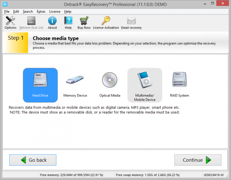 Easy Recovery Professional может восстановить файлы любого типа и работает с разными типами носителей, включая жесткие диски, USB-устройства, оптические диски, мобильные устройства, RAID-массивы. Она так же поддерживает файловые системы NTFS, FAT, exFAT, HSF+ и др. Используя инструменты, входящие в состав этой программы, можно восстановить случайно удаленные файлы, а также файлы утерянные в результате форматирования носителя, воздействия вирусов, повреждения файловой системы, проблем с разделами и т.д.