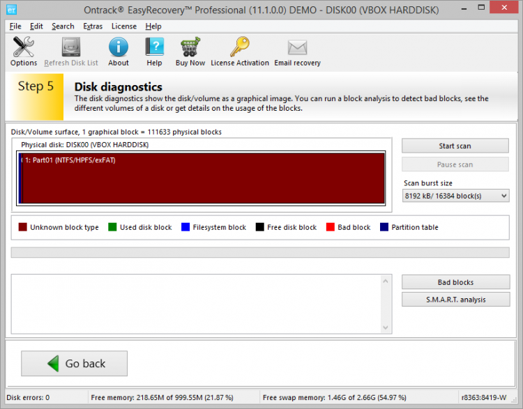 В Ontrack EasyRecovery Professional есть инструмент для диагностики жесткого диска. Он сканирует диск блок за блоком, позволяет найти поврежденные блоки. Он так же позволяет сравнить части жесткого диска, чтобы получить информацию об использовании блоков.