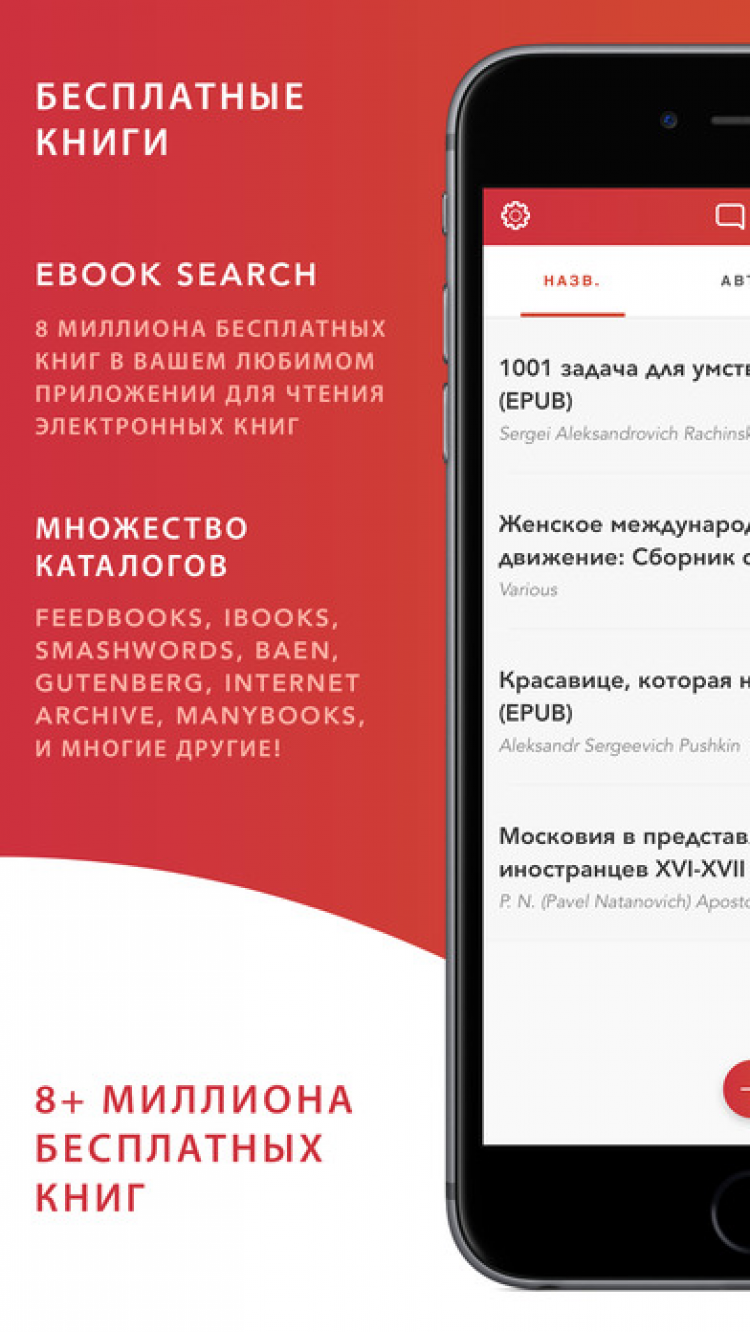 eBook Search - Бесплатные книги Для того чтобы получить доступ к практически неисчерпаемому источнику бесплатных книг, установите программу поиска электронных книг eBook Search! Программа передает содержимое книг прямо в приложение Kindle, Nook, iBooks, а также многие другие приложения для чтения электронных книг.