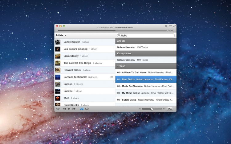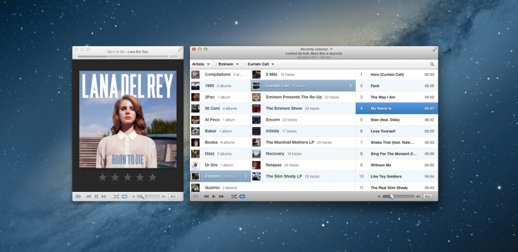 Ecoute Этот компактный плеер позволит слушать музыку из медиатеки iTunes, не запуская iTunes. Ведь iTunes все таки слишком "тяжелый", и не очень подходит для ситуаций когда хочется просто послушать музыку. С Ecoute вы легко и быстро получите доступ к любимым трекам и сможете их послушать. При этом Ecoute умеет искать недостающие обложки, скроблить на Last.fm и может изменять свой внешний вид благодаря темам оформления.