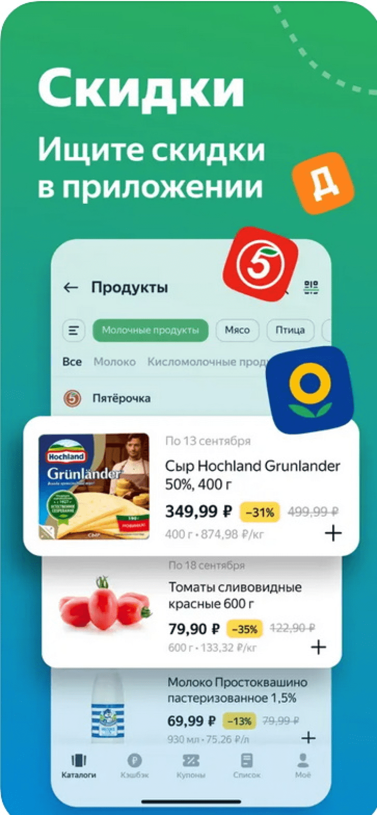 В последней версии приложения, вы найдёте информацию обо всех актуальных скидках и специальных предложениях ваших любимых магазинов.Все данные разбиты как по категориям товаров, так и по супермаркетам, в которых действуют соответствующие предложения. Выберите заинтересовавшее предложение и получите информацию о сроках проведения акции и адресах магазинов. Помимо этого, в этой программе вы можете получить кэшбэк за покупки. Ознакомьтесь с предложениями партнёров сервиса и сканируйте QR-код на чеках, чтобы получить частичный возврат денежных средств.