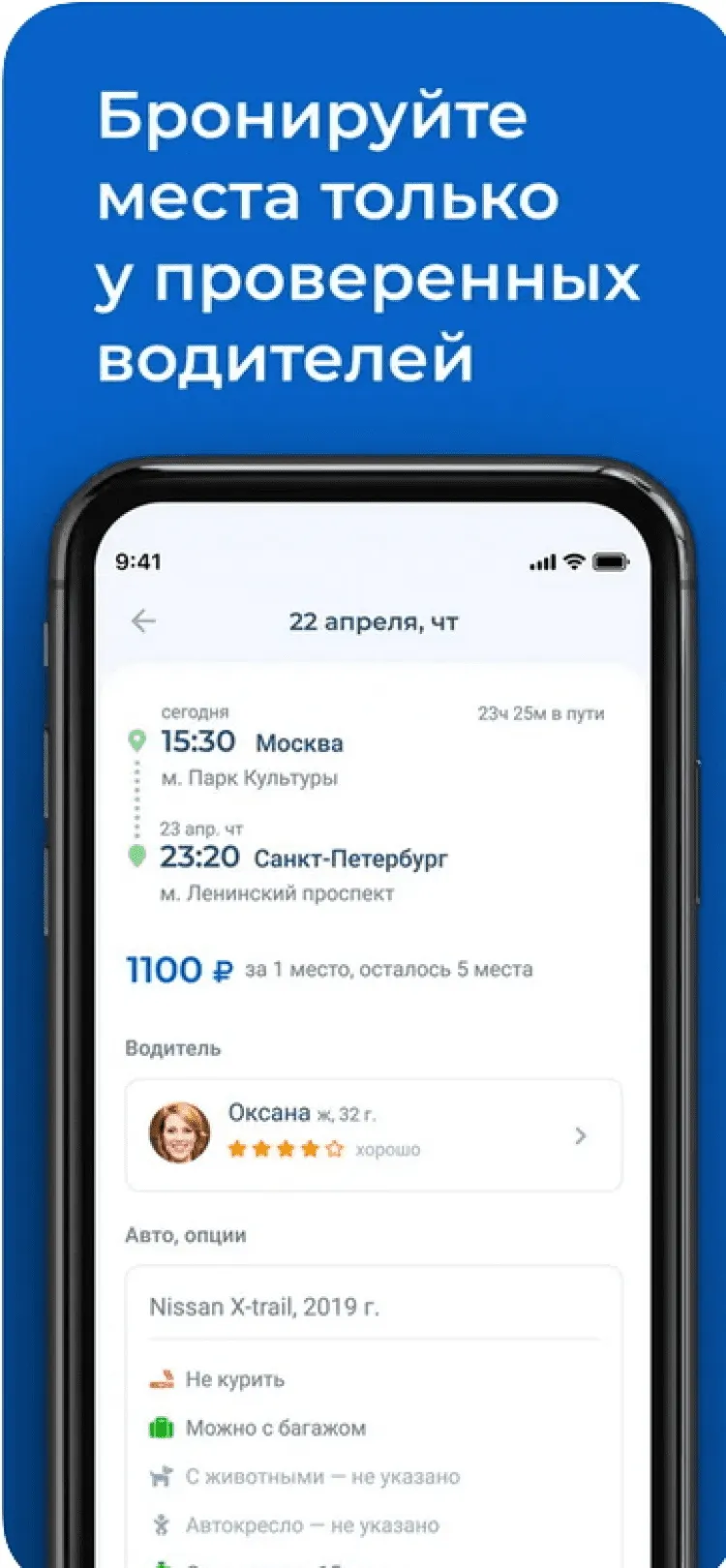 Воспользуйтесь поиском по предложенным поездкам, чтобы найти поездку в нужный город. Забронируйте место и свяжитесь с водителем, чтобы обсудить детали, после чего останется только явиться а назначенное место и наслаждаться поездкой.