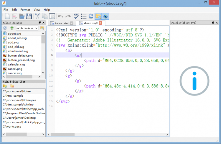 Edit++ это весьма удобный в работе редактор. Его можно использовать для работы с обычным текстом или исходным кодом. Редактор поддерживает следующие языки: ASP, bash, C#, C/C++, cisco, cmake, css, diff, dos-bat, HTML, ini, Java, Javascript, JSON, JSP, OpenCL, Objective-C++, pascal, perl, python, QML, ruby, scss, spice, SQL, TCL и XML.