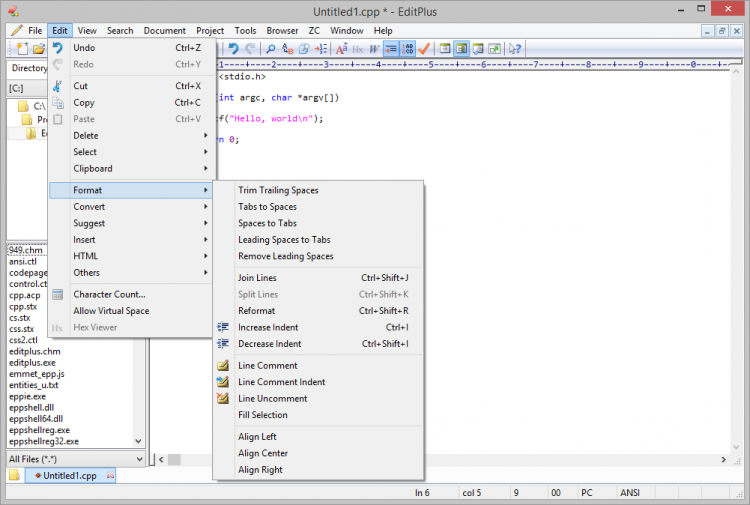 Для работы в текстовом редакторе с подсветкой синтаксиса языков программирования и документов HTML, позволяющем использовать средства пакетной обработки файлов, рекомендуем скачать EditPlus. Приложение будет полезным для профессиональных программистов. Разработан EditPlus для Windows. У приложения малый размер. Установка безопасна. Загрузить EditPlus и использовать в качестве редактора текстов можно бесплатно, без ограничений и рекламы.