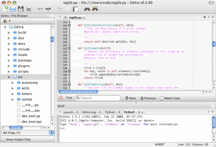 Editra Кроссплатформенный редактор текста и программного кода. Поддерживает подсветку синтаксиса для более чем 30 языков программирования. Обладает простым и понятным интерфейсом.
