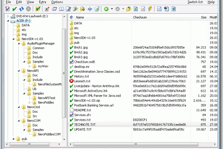 EF CheckSum Manager можно использовать для проверки целостности файлов, скопированные на различные съемныe носители (CD, USB-флешки и пр) или скачанных из интернета. Для удобной навигации в EF CheckSum Manager есть встроенный файловый менеджер. В окне программы показывается список файлов в выбранной папке, который содержит информацию о названии и размере файла, дате последнего редактирования и контрольной сумме.