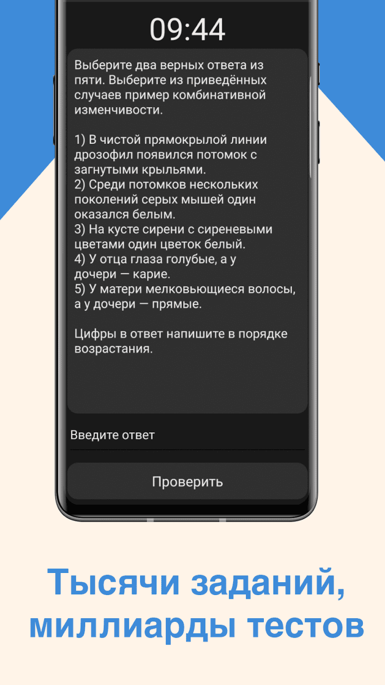 - практические задания и тесты по биологии;