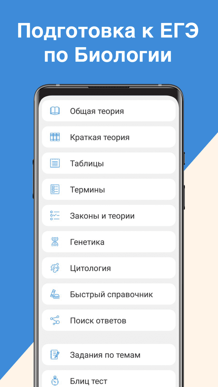 ЕГЭ Биология — это приложение поможет вам подготовиться к сдаче ЕГЭ по Биологии. Для этого, предлагает огромное множество теоретических материалов и практических заданий для закрепления полученных знаний.