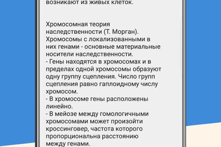 Благодаря этой программе, вы не только сможете повторить пройденный материал и с уверенностью сдать Единый государственный экзамен, но и получить новые знания в затруднительных для вас темах. Приложение было разработано при участии профессоров и репетиторов по биологии, поэтому вы можете быть уверены в актуальности и достоверности предложенной информации. В последней версии программы, вы найдёте всю необходимую теоретические материалы, а затем сможете проверить себя при помощи встроенных тестов и практических задач, приближенных к тому, что вас ожидает на ЕГЭ. Для удобства, контент сгруппирован по разделам: