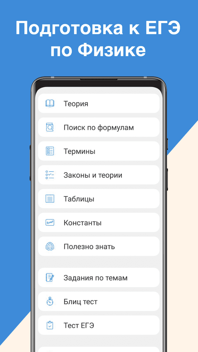 ЕГЭ Физика — это приложение поможет вам повторить пройденный материал по Физике, закрепить полученные знания и пойти на сдачу ЕГЭ с уверенностью в своих силах.