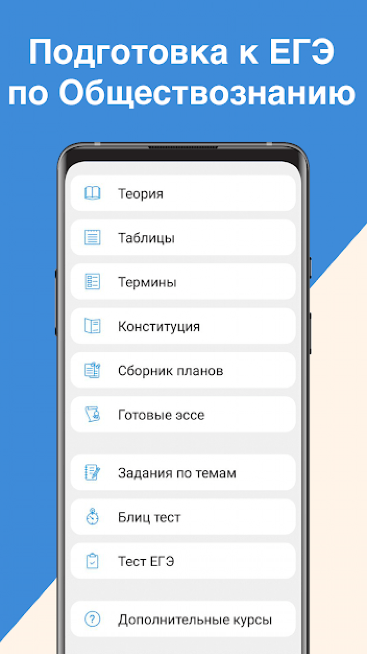 Нужен помощник в подготовке к Единому государственному экзамену по Обществознанию? Тогда скачайте ЕГЭ Обществознание для Android.