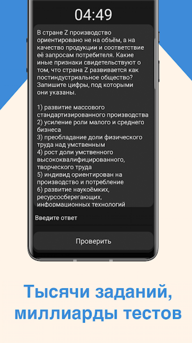 ЕГЭ Обществознание — это полезный помощник для школьников, который поможет подготовиться к сдаче Единого государственного экзамена по Обществознанию. Предоставляет всю необходимую теоретическую информацию, тесты для проверки знаний и позволяет задать вопросы другим ученикам, во встроенном чате.