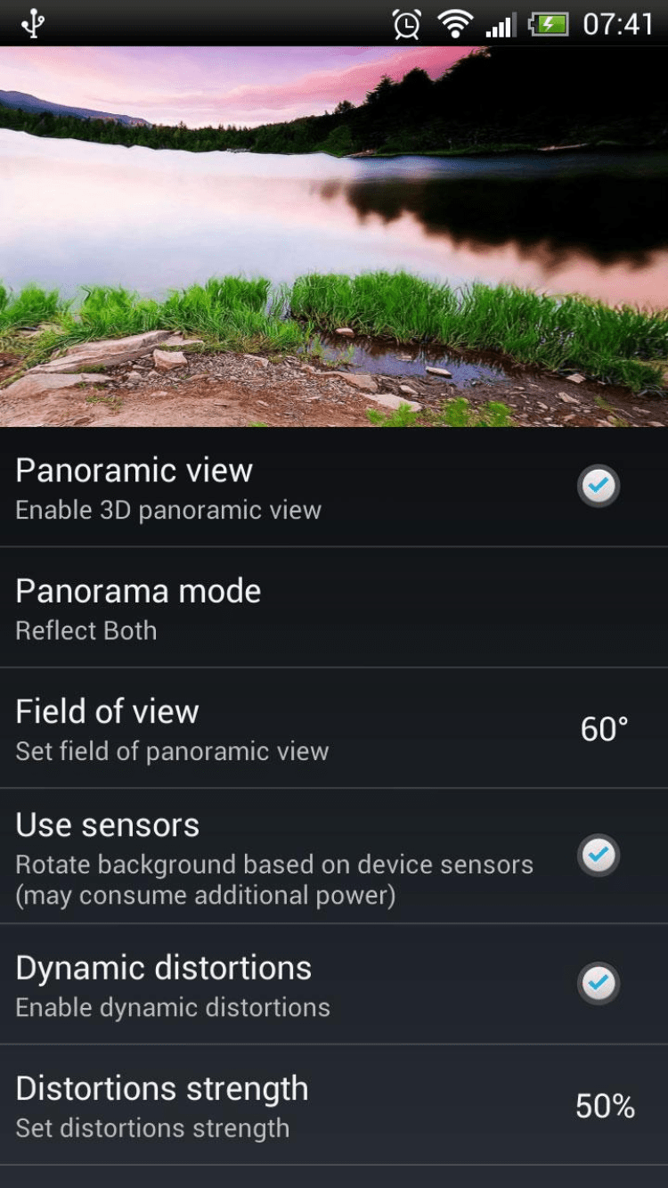 Экран-панорама — программа, которая позволит вам создавать живые обои в виде трехмерных панорам из любых обоев или двухмерных снимков. Panoramic Screen содержит большой выбор настроек для создания панорамных изображений из обычных картинок или фотографий, позволяя накладывать различные эффекты или создавать эффект растяжения изображения. С помощью этого приложения вы сможете создавать HD панорамы без потери качества, полностью совместимые с различными лаунчерами.