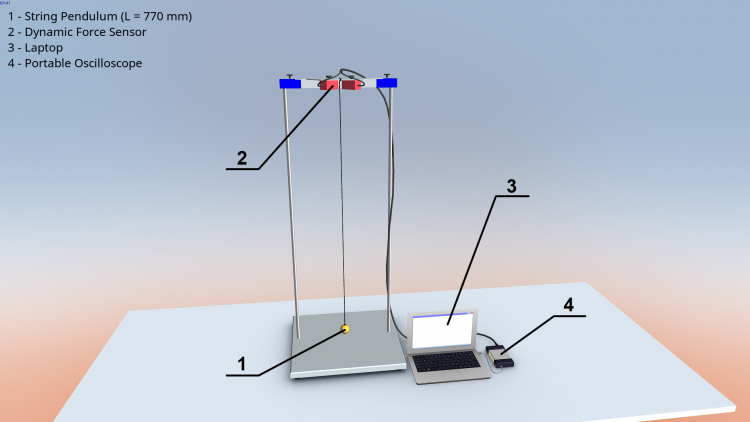 КРАТКОЕ ОПИСАНИЕ: В зависимости от начальных условий, соответствующий подвесной маятник будет колебаться таким образом, что его груз будет описывать эллипс при небольших отклонениях маятника от положения покоя. Если это движение разложить на две перпендикулярные составляющие, между этими составляющими будет наблюдаться разность фаз. В данном опыте исследуется эта взаимосвязь путем измерения колебаний с помощью двух перпендикулярно установленных динамических датчиков силы. Затем оцениваются амплитуды этих составляющих и разность их фаз.