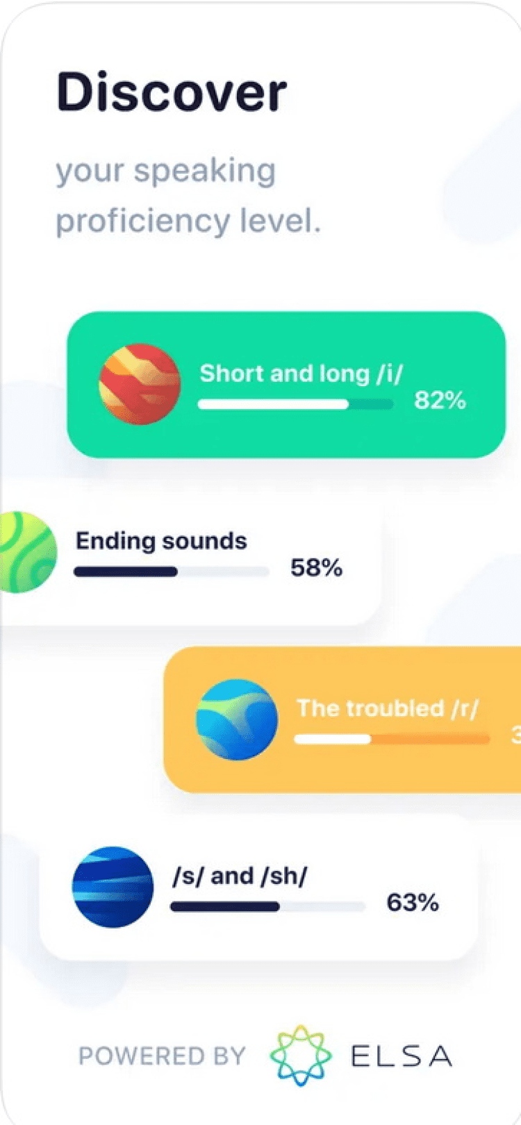 ELSA Speak - Accent Reduction — программа, предназначенная для изучения английского языка и устранения иностранного акцента. Учитесь в игровой форме и улучшайте своё произношение, занимаясь всего по 10 минут в день.