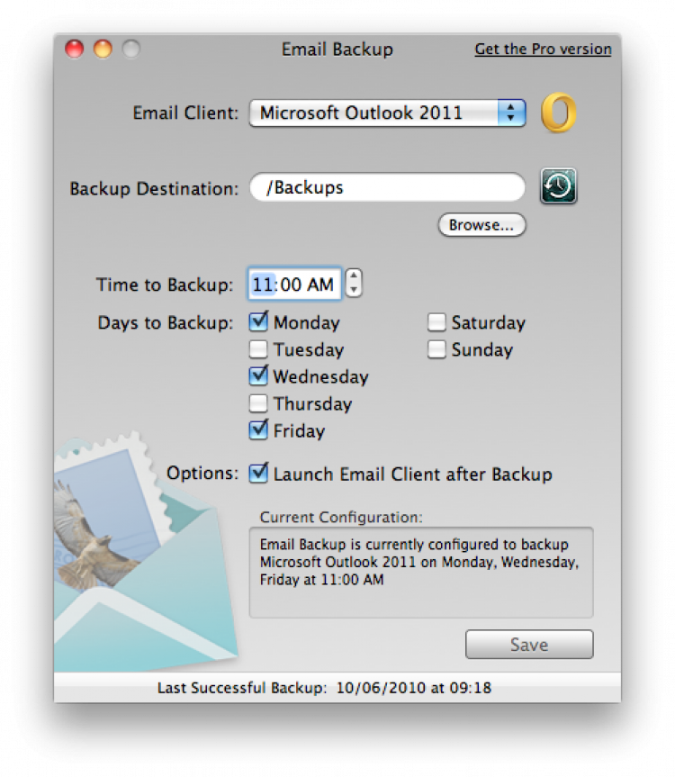 Email Backup умеет работать с Apple Mail, Microsoft Outlook 2011, Microsoft Entourage v.X, 2004 и 2008, Eudora и Thunderbird.