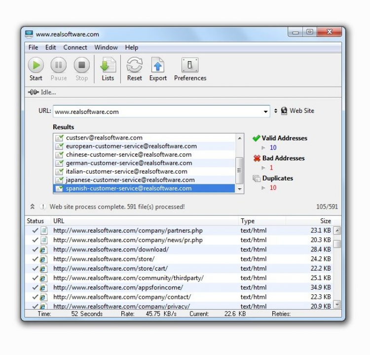 eMail List Builder - это мощный и надежный инструмент, позволяющий создавать готовые к употреблению базы email-адресов путем извлечения адресов электронной почты с сайтов и веб-страниц. eMail List Builder может в кратчайшие сроки обрабатывать целые сайты и любые веб-страницы, извлекая абсолютно все содержащиеся на них адреса электронной почты.