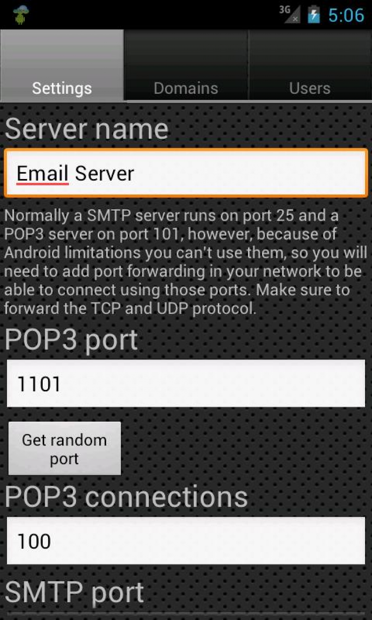 Email Server Программа, которая поможет вам поднять собственный POP3 и SMTP почтовый сервер на своем мобильном устройстве. Это пробная версия приложения, которая позволит вам добавить только один сервер с тремя пользователями.