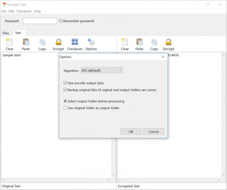 Encrypt Care - это бесплатная программа для Windows, с помощью которой пользователи могут зашифровать или расшифровать любой текст и файлы разных форматов. Плюс она также позволяет работать с контрольными суммами файлов.