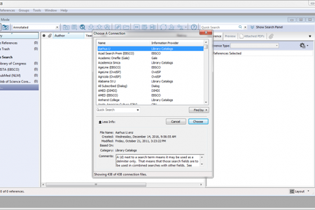 Помимо этого, EndNote позволяет выполнять поиска материала на различных публичных веб-сайтах, включая "Library of Congress", "LISTA (EBSCO)", "Web of Science" и пр.
