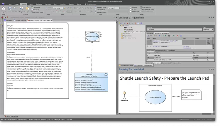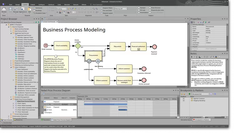 Программа Enterprise Architect позволяет редактировать отношения между элементами, а также изменять сценарии и правила. С её помощью, вы можете построить надежную модель для отслеживания системных требований на каждом этапе вашего проекта, от начального проектирования до развертывания, а также проводить анализ влияния последних изменений перед их внедрением. Также, поддерживает обратный инжиниринг исходного кода для самых популярных языков программирования и схем баз данных и обладает встроенным редактором кода. Последний поможет создавать, тестировать, отлаживать и выполнять различные сценарии ещё быстрее. Стоит добавить, что в состав программы входит мощный генератор документов и отчетов, которые можно быстро распространить среди ваших клиентов и партнеров.