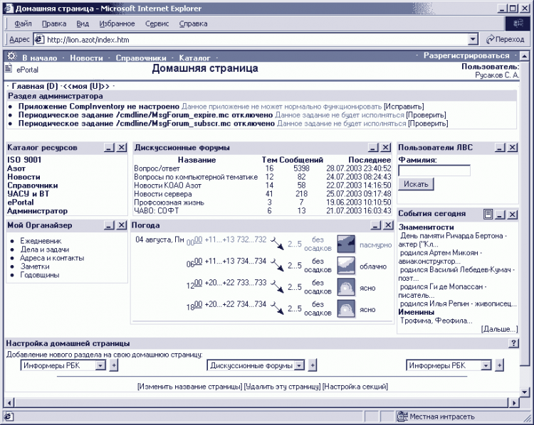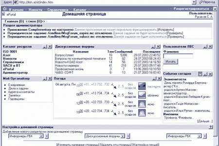ePortal - это внутренний ВЕБ сайт предприятия: новости, настраиваемая домашняя страница для каждого юзера, каталог ресурсов, форумы, телефонный справочник предприятия, анализатор логов squid, учет трафика по пользователям, блокировка доступа в Интернет и так далее.