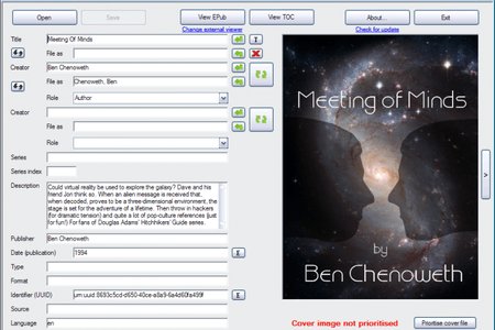 EPub Metadata Editor — это легкая и простая в обращении программа, которая поможет заполнить, отредактировать и исправить информацию о EPub книгах.